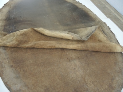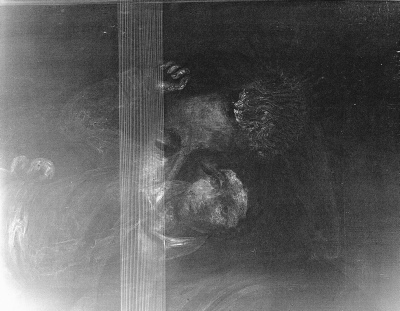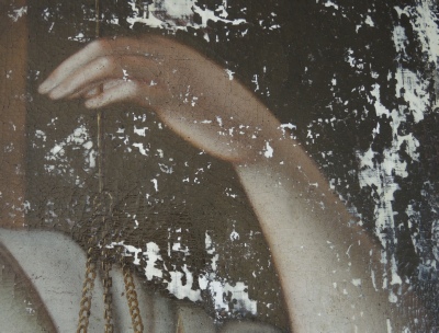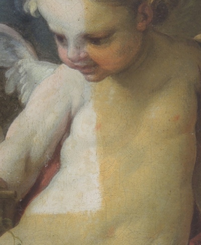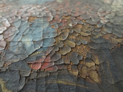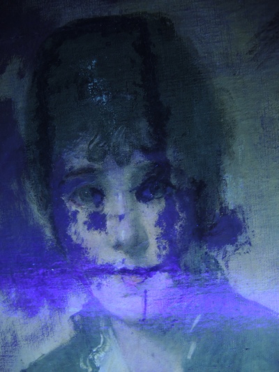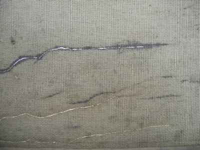 Nettoyage du revers du tableau par micro-aspiration afin d'éliminer les poussières et matériaux accumulés entre la toile et son châssis.